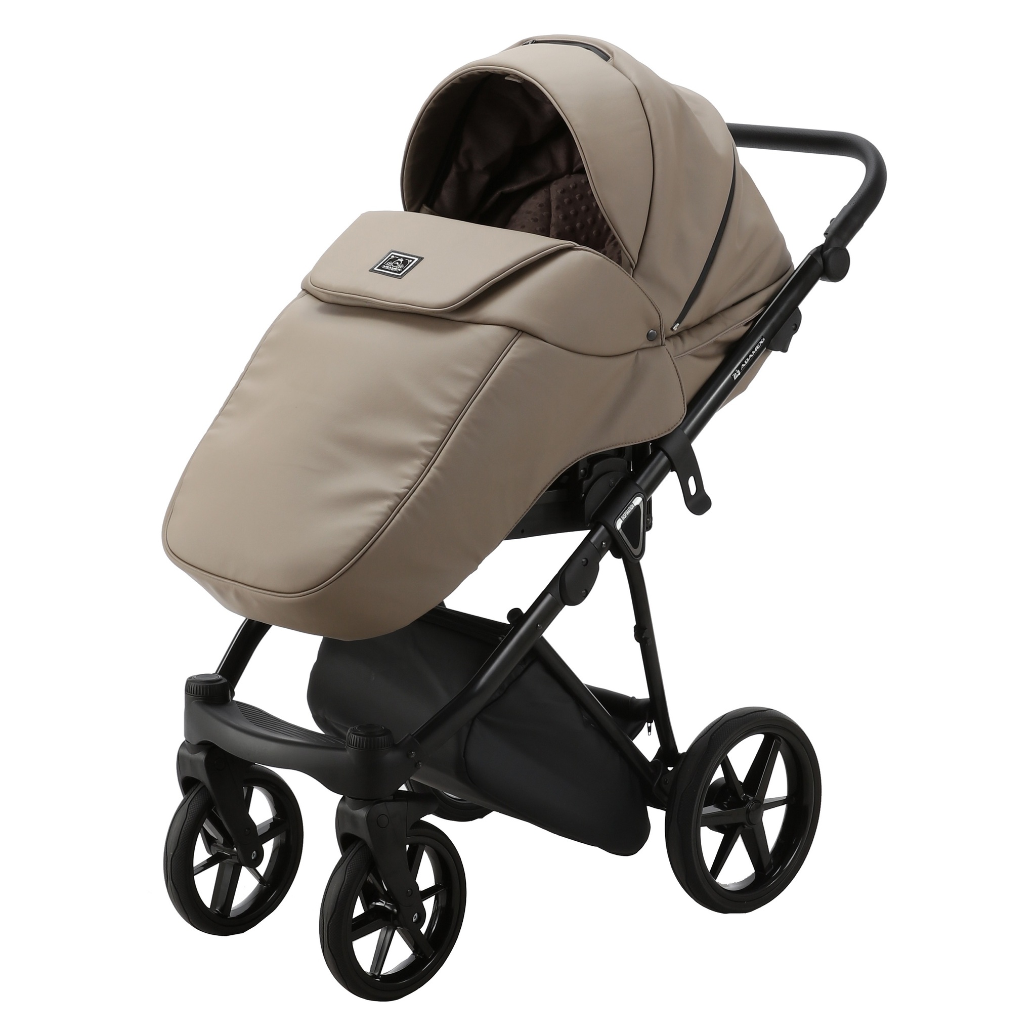 Нижняя часть люльки изготовлена из пластика, которая обтянута эко-кожей. Внутренняя часть люльки имеет хлопковую подкладку. Матрас с кокосовым лайнером в чехле из хлопковой ткани, чехол съемный, его легко можно снять и постирать. Спинка в люльке регулируется с помощью «барашка», расположенного снизу люльки. В донышке люльки предусмотрена регулируемая система вентиляции.