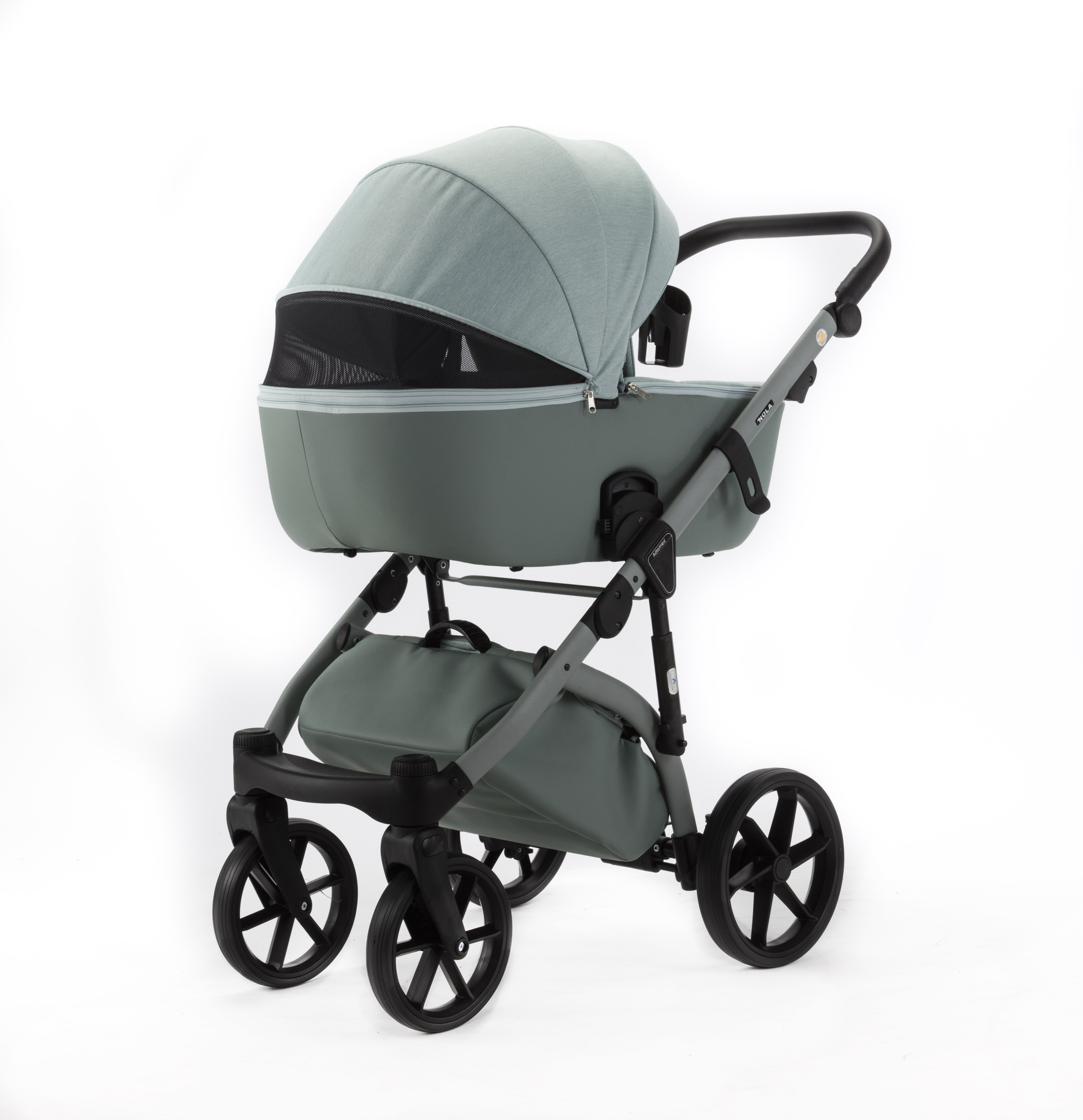 Детская универсальная коляска Adamex NOLA Natura MINT-8 (2в1) - Мятная ткань, мятная экокожа