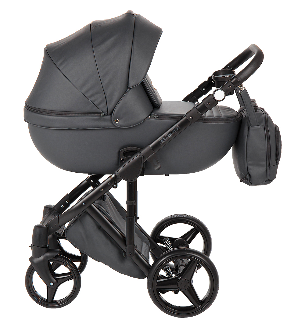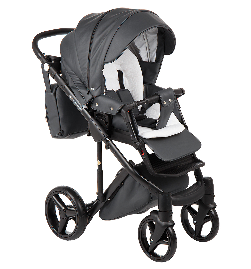 Adamex Luciano серии Deluxe - универсальная коляска создана из 100% эко-кожи. Необычное видение дизайнеров этой современной тенденции несет не только эстетический характер, но и весьма практический. Материал эко-кожа практичен в любое время года, его легко можно протереть от пыли, грязи. Летом этот материал практически не нагревается, вопреки многим мнениям. Эко-кожа не боится моющих средств (исключение: хлоросодержащие, амиакосодержащие средства). Алюминиевая рама оснащена новым двойным амортизатором, который имеет функцию установки в жестком режиме. Благодаря этой функции и поворотным передним колесам с фиксацией в прямом положении, коляской удобно управлять на любой поверхности, сохраняя плавность хода. Капюшоны для люльки (корзины) и прогулочного блока имеют дополнительную вентиляцию, которую можно открыть при необходимости, а так же солнцезащитные козырьки. В корпусе люльки (корзины) на дне встроено регулируемое вентиляционное отверстие. Модель укомплектована кокосовым матрасиком.