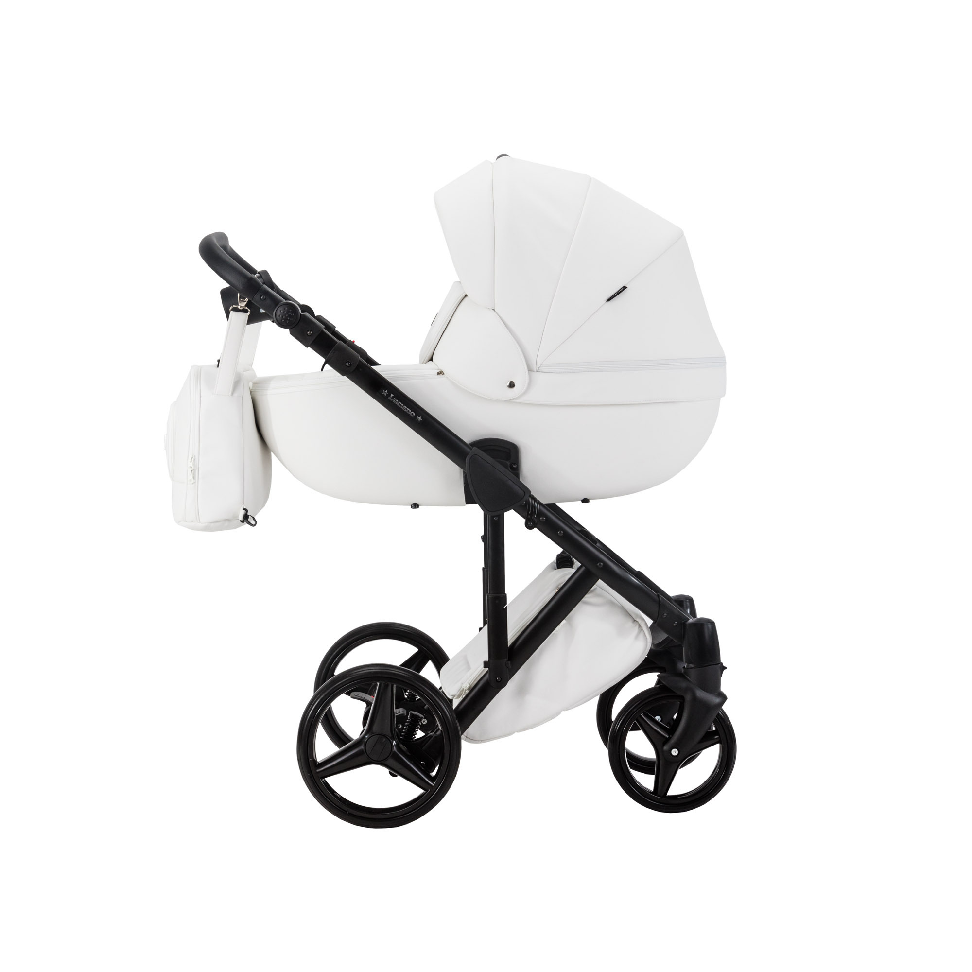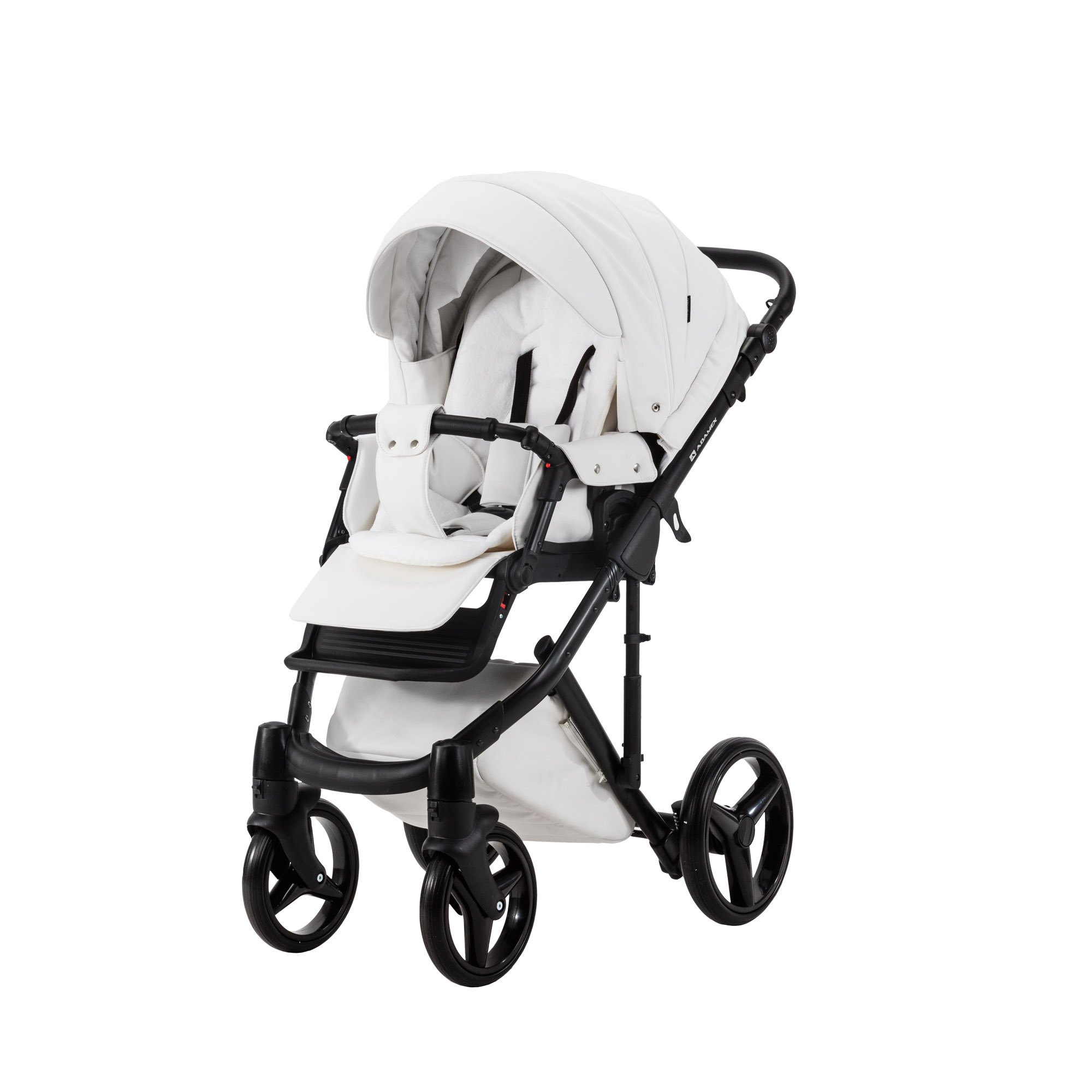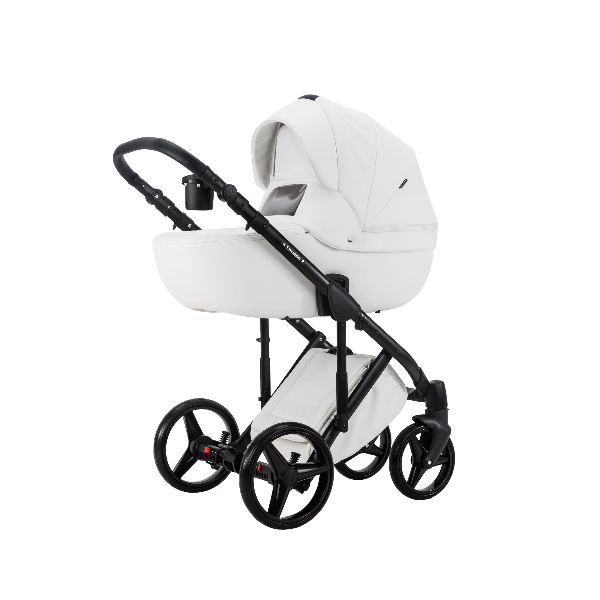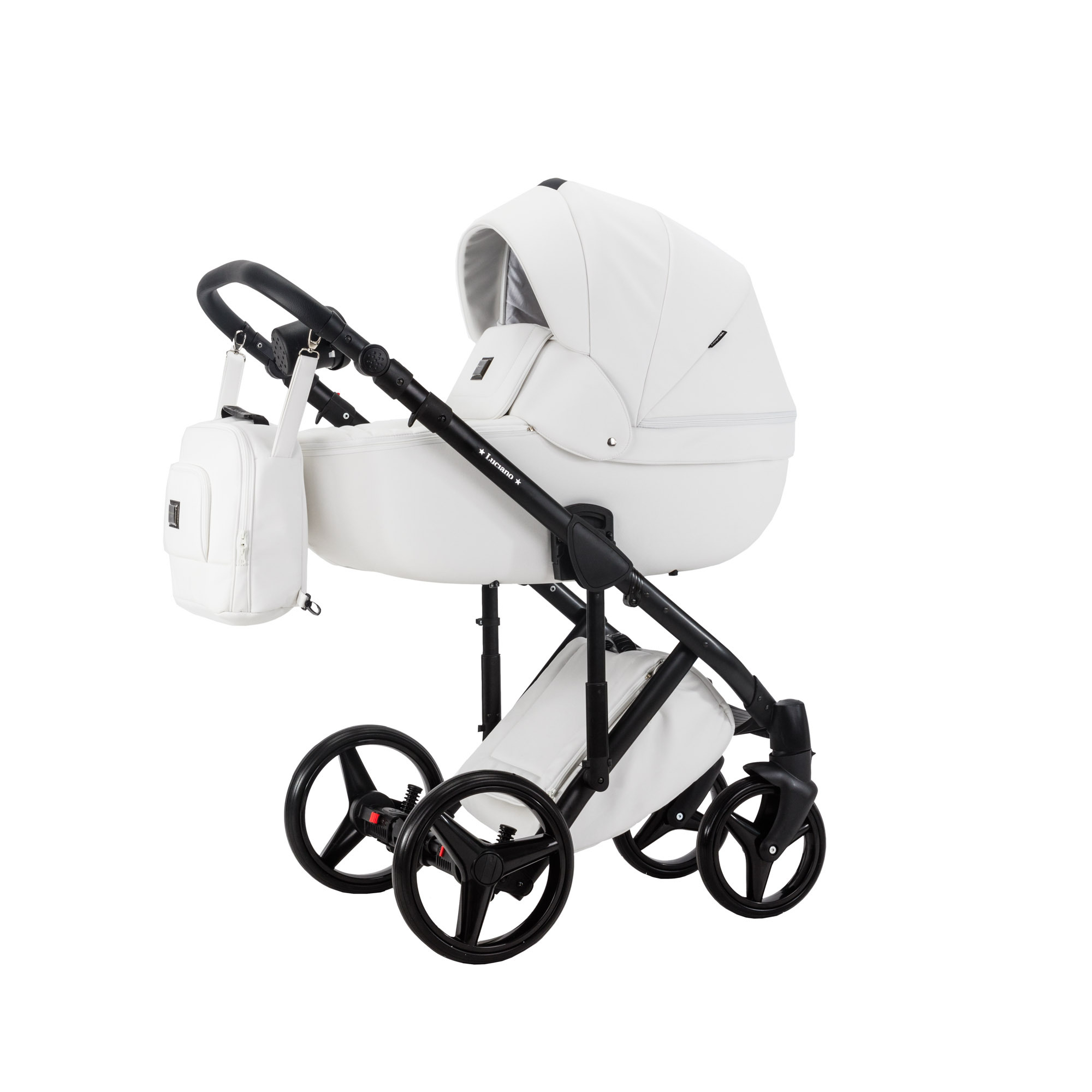 Adamex Luciano серии Deluxe - универсальная коляска создана из 100% эко-кожи. Необычное видение дизайнеров этой современной тенденции несет не только эстетический характер, но и весьма практический. Материал эко-кожа практичен в любое время года, его легко можно протереть от пыли,грязи. Летом этот материал практически не нагревается, вопреки многим мнениям. Эко-кожа не боится моющих средств (исключение: хлоросодержащие, амиакосодержащие средства). Алюминиевая рама оснащена новым двойным амортизатором, который имеет функцию установки в жестком режиме. Благодаря этой функции и поворотным передним колесам с фиксацией в прямом положении, коляской удобно управлять на любой поверхности, сохраняя плавность хода. Капюшоны для люльки (корзины) и прогулочного блока имеют дополнительную вентиляцию, которую можно открыть при необходимости, а так же солнцезащитные козырьки. В корпусе люльки (корзины) на дне встроено регулируемое вентиляционное отверстие. Модель укомплектована кокосовым матрасиком.