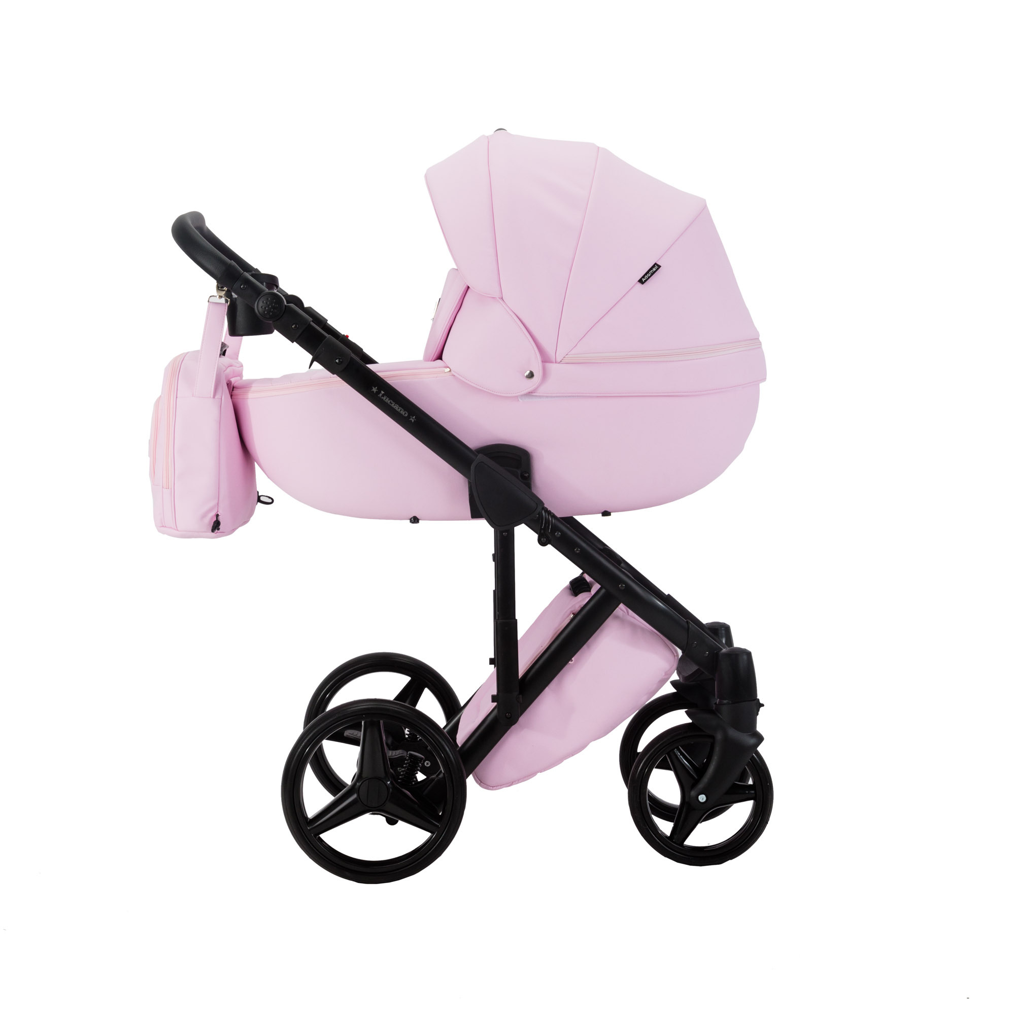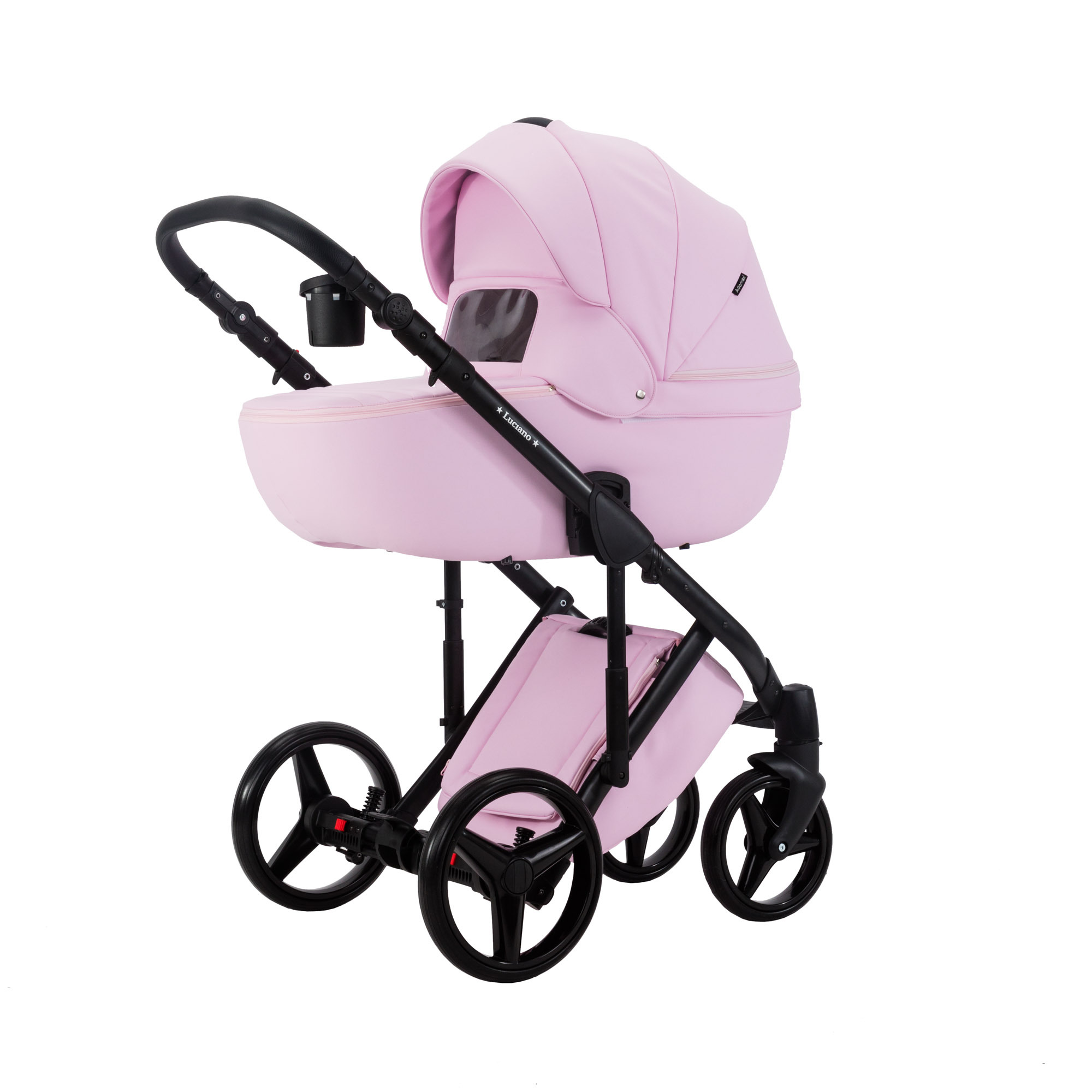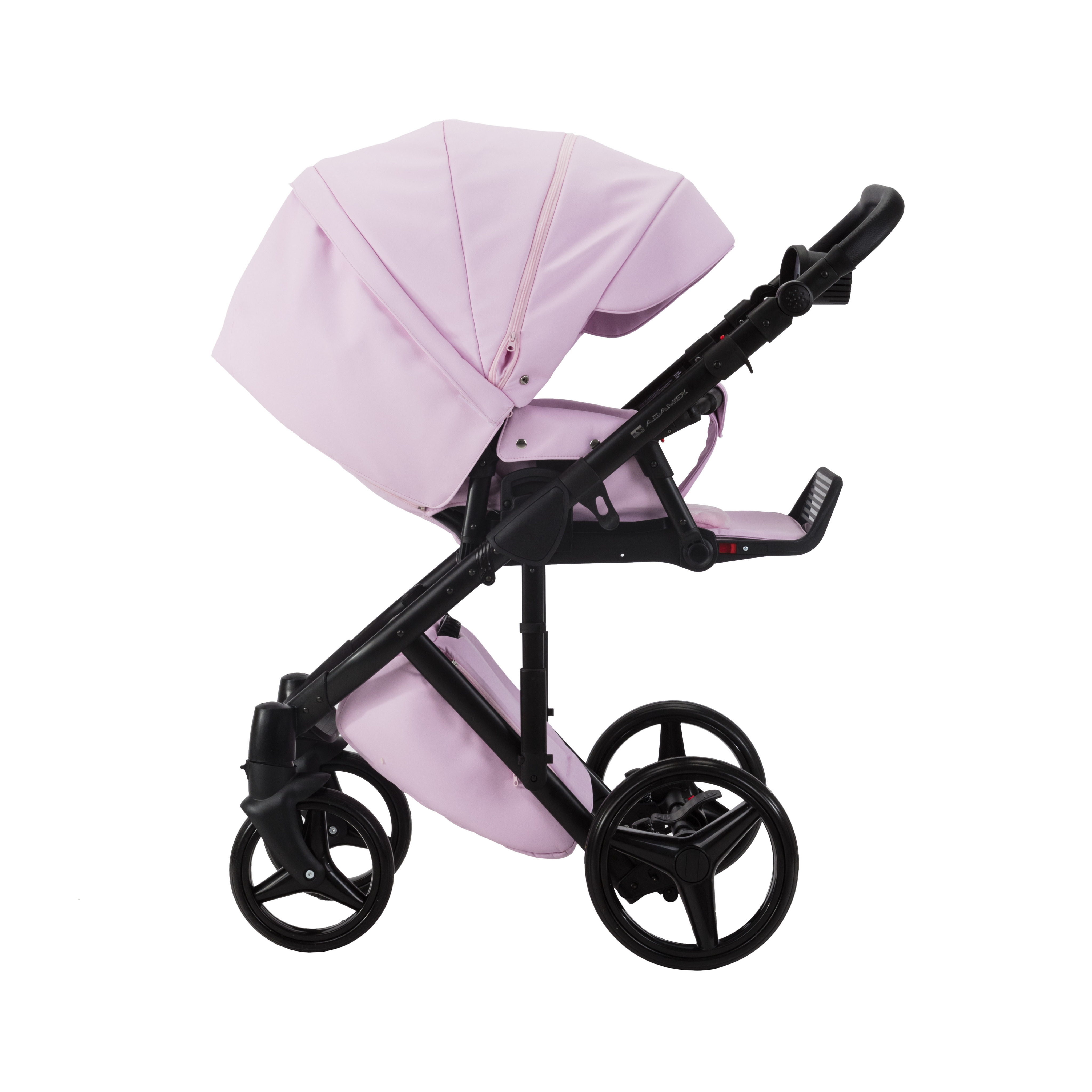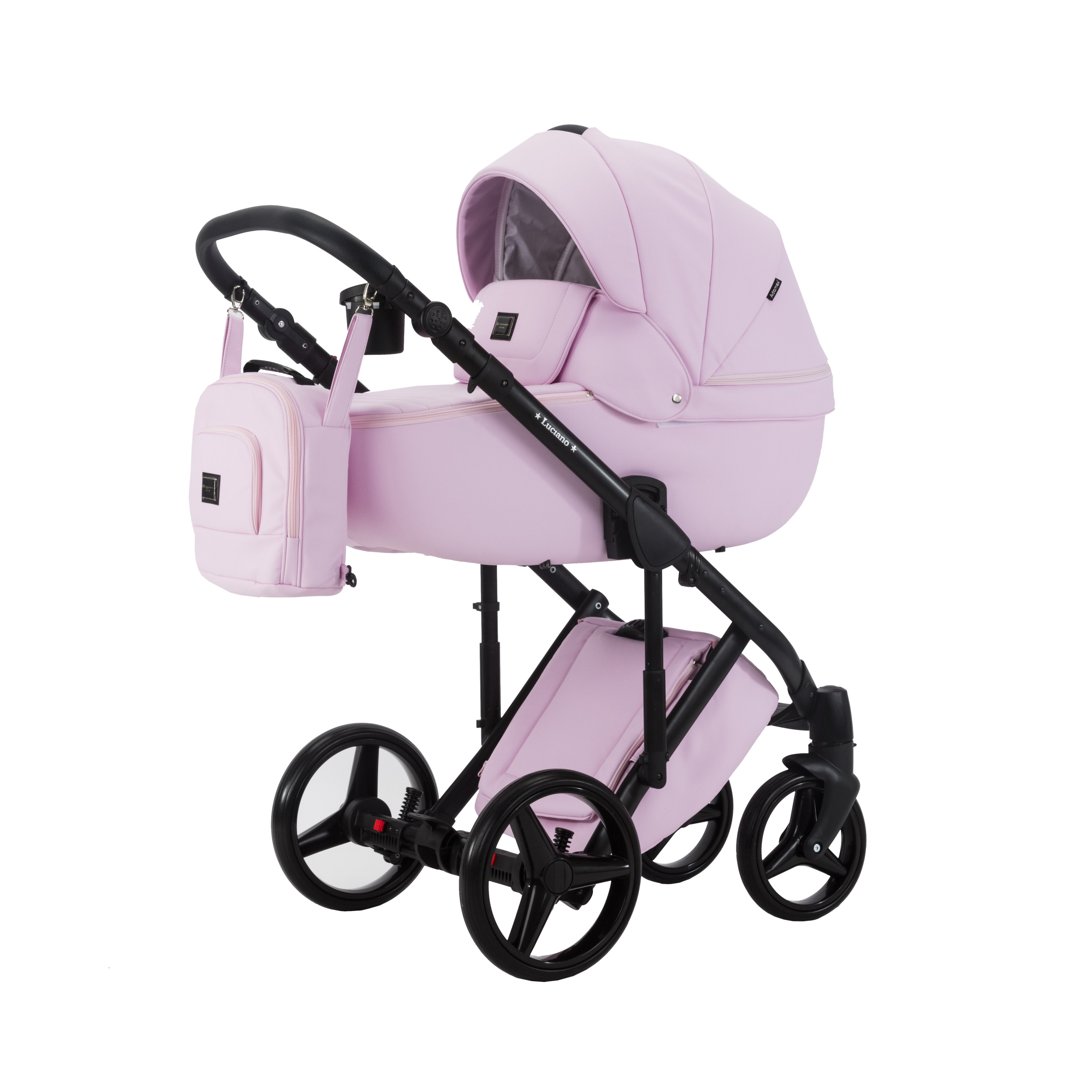 Adamex Luciano серии Deluxe - универсальная коляска создана из 100% эко-кожи. Необычное видение дизайнеров этой современной тенденции несет не только эстетический характер, но и весьма практический. Материал эко-кожа практичен в любое время года, его легко можно протереть от пыли,грязи. Летом этот материал практически не нагревается, вопреки многим мнениям. Эко-кожа не боится моющих средств (исключение: хлоросодержащие, амиакосодержащие средства). Алюминиевая рама оснащена новым двойным амортизатором, который имеет функцию установки в жестком режиме. Благодаря этой функции и поворотным передним колесам с фиксацией в прямом положении, коляской удобно управлять на любой поверхности, сохраняя плавность хода. Капюшоны для люльки (корзины) и прогулочного блока имеют дополнительную вентиляцию, которую можно открыть при необходимости, а так же солнцезащитные козырьки. В корпусе люльки (корзины) на дне встроено регулируемое вентиляционное отверстие. Модель укомплектована кокосовым матрасиком.