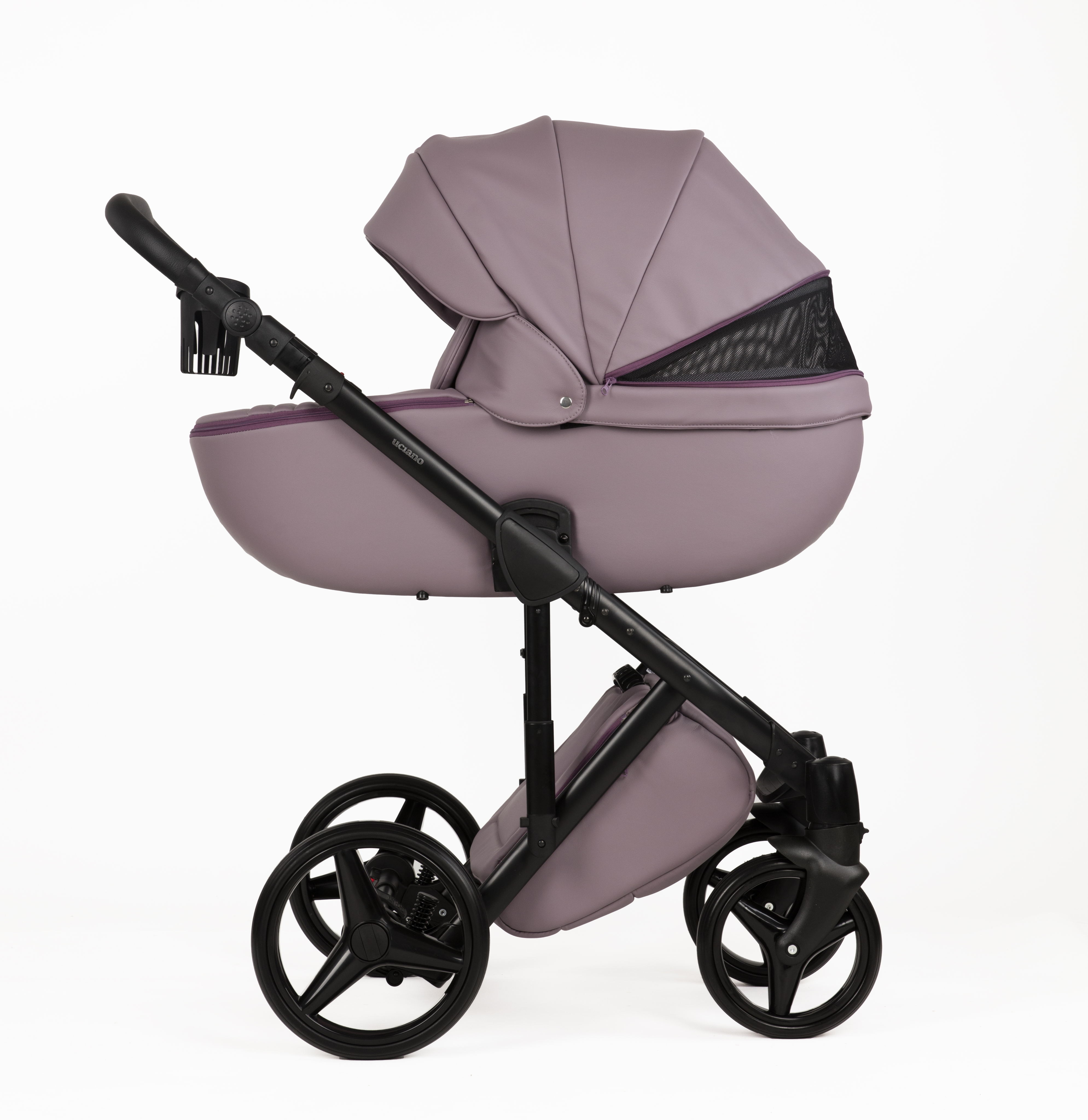 Adamex Luciano серии Deluxe - универсальная коляска создана из 100% эко-кожи. Необычное видение дизайнеров этой современной тенденции несет не только эстетический характер, но и весьма практический. Материал эко-кожа практичен в любое время года, его легко можно протереть от пыли,грязи. Летом этот материал практически не нагревается, вопреки многим мнениям. Эко-кожа не боится моющих средств (исключение: хлоросодержащие, амиакосодержащие средства). Алюминиевая рама оснащена новым двойным амортизатором, который имеет функцию установки в жестком режиме. Благодаря этой функции и поворотным передним колесам с фиксацией в прямом положении, коляской удобно управлять на любой поверхности, сохраняя плавность хода. Капюшоны для люльки (корзины) и прогулочного блока имеют дополнительную вентиляцию, которую можно открыть при необходимости, а так же солнцезащитные козырьки. В корпусе люльки (корзины) на дне встроено регулируемое вентиляционное отверстие. Модель укомплектована кокосовым матрасиком.